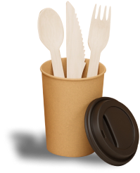 High quality disposable paper products including cups, lids, trays, dinnerware, cutlery, and more